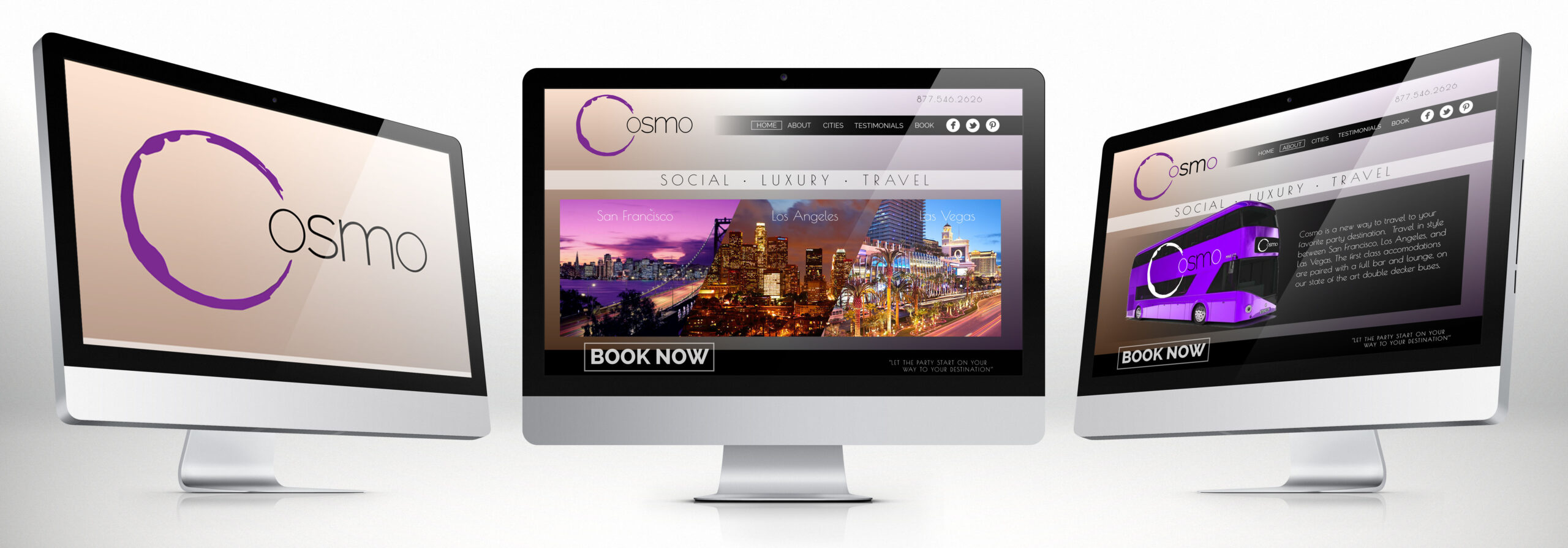 Cosmo is a luxury transportation concept designed to revolutionize the way we travel between San Francisco, Los Angels and Las Vegas. The concept combines first class accommodations, including a sports lounge and full bar on board a double-decker bus, to crate an out this world traveling experience.